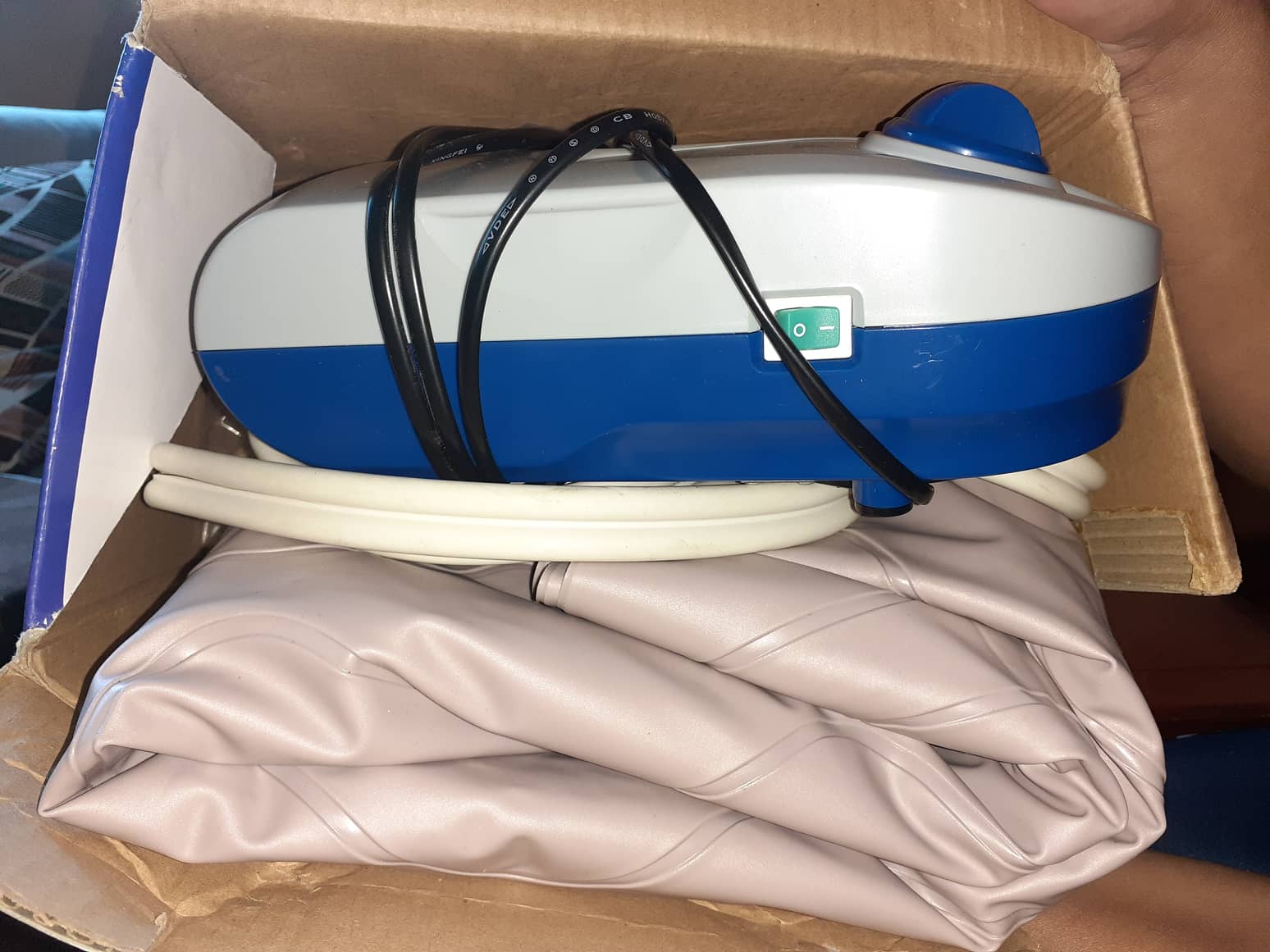 espectacular colchón anti escaras , recomendable para persona o pacientes encamados para evitar cualquier tipo de lesión ,debido a la poca movilidad trae su propio compresor para inflarlo todos sus accesorios. totalmente nuevo